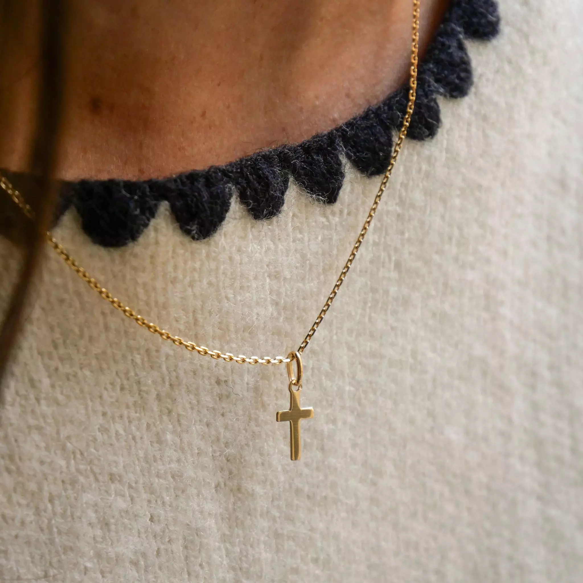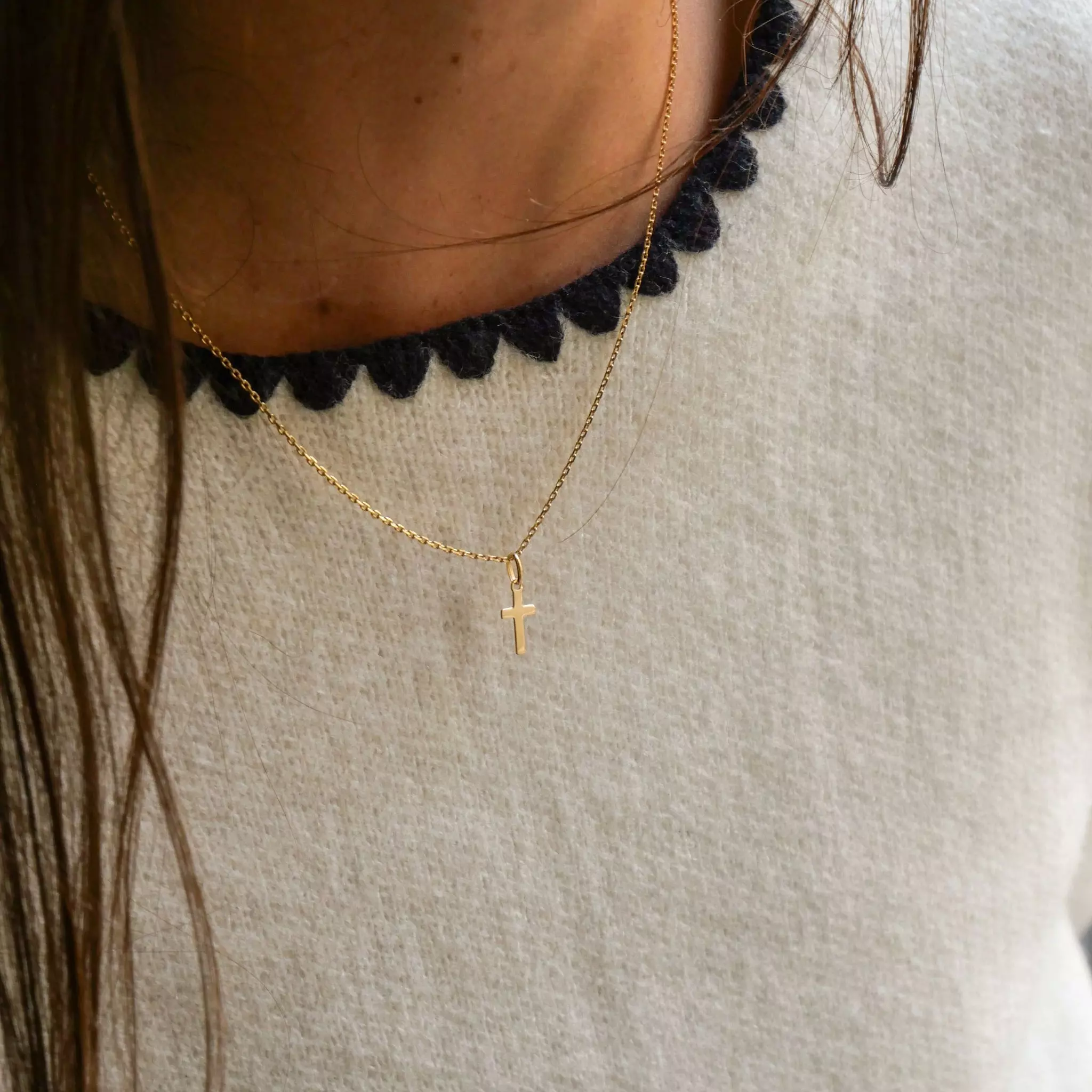 Cette petite croix en or jaune 18 carats (750/1000) est un bijou sobre et intemporel, symbole universel de foi et de protection.