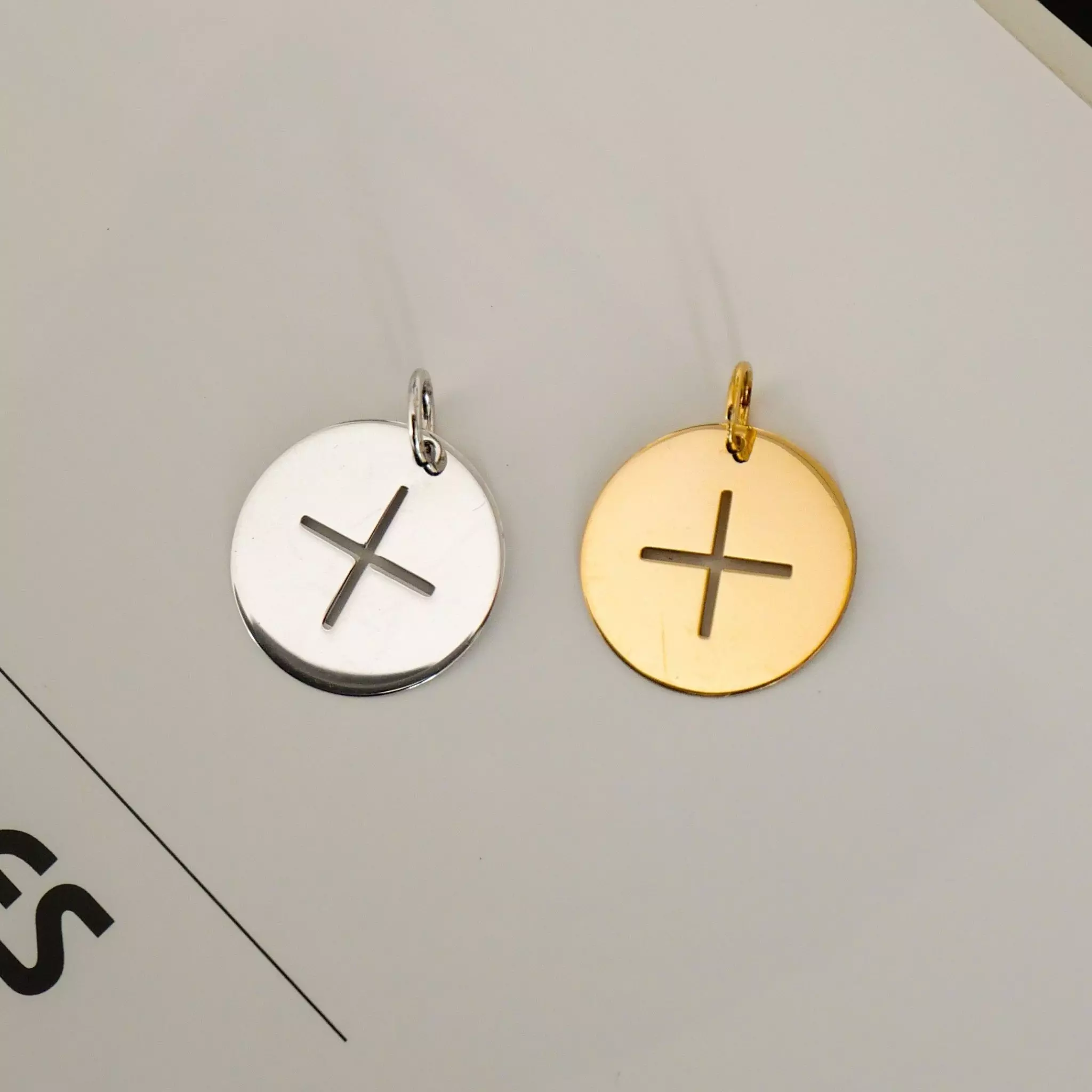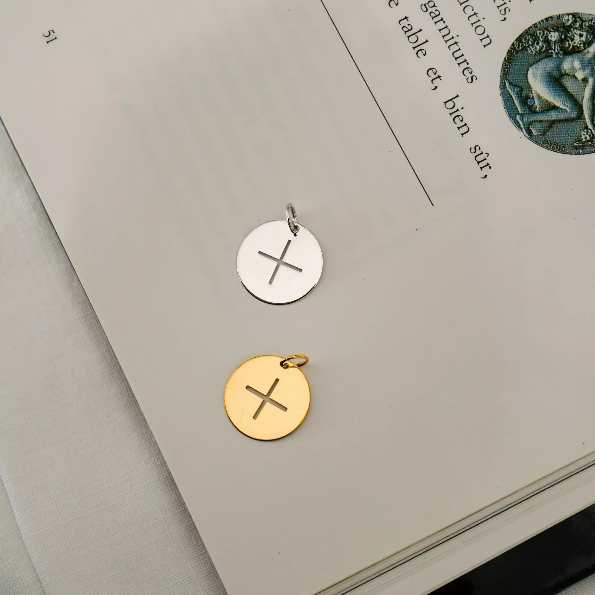 Ces bijoux sont des jetons en or jaune ou blanc ajourés par de beaux symboles chrétiens. Ces médailles sont proposées avec ou sans bélière. Ils se portent sur une chaîne fine et aussi sur cordon liberty avec bouton en or.