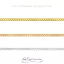 Maison la Couronne présente une gamme de chaînes en or 18 carats, or jaune, blanc ou rose. Différents types de maille sont proposés: forçat, forçat rond et gourmette, ce sont des mailles classiques qui s'adapteront aux femmes comme aux hommes.