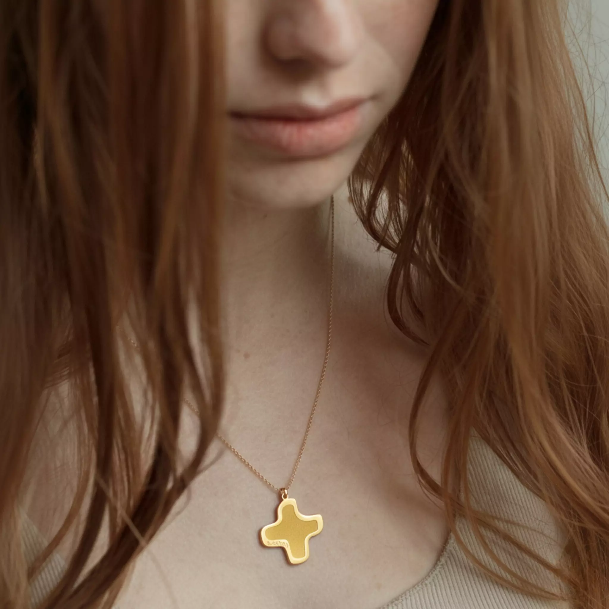 Cette croix Arcabas associe avec élégance deux finitions contrastées : un cœur sablé qui apporte profondeur et modernité, et un contour poli brillant qui souligne le relief du bijou. La signature du peintre Arcabas, discrètement gravée, atteste de l’authenticité et de la valeur artistique de ce pendentif.