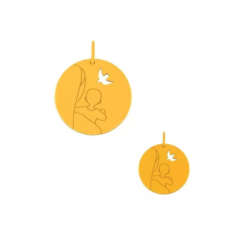 Notre duo Médaille Vierge d'espérance est composé d'une médaille de 18mm de diamètre ou il est possible de faire une gravure d'un prénom et d'une date et d'une mini médaille de 18mm à porter sur une chaine ou un bracelet cordon (non gravable)