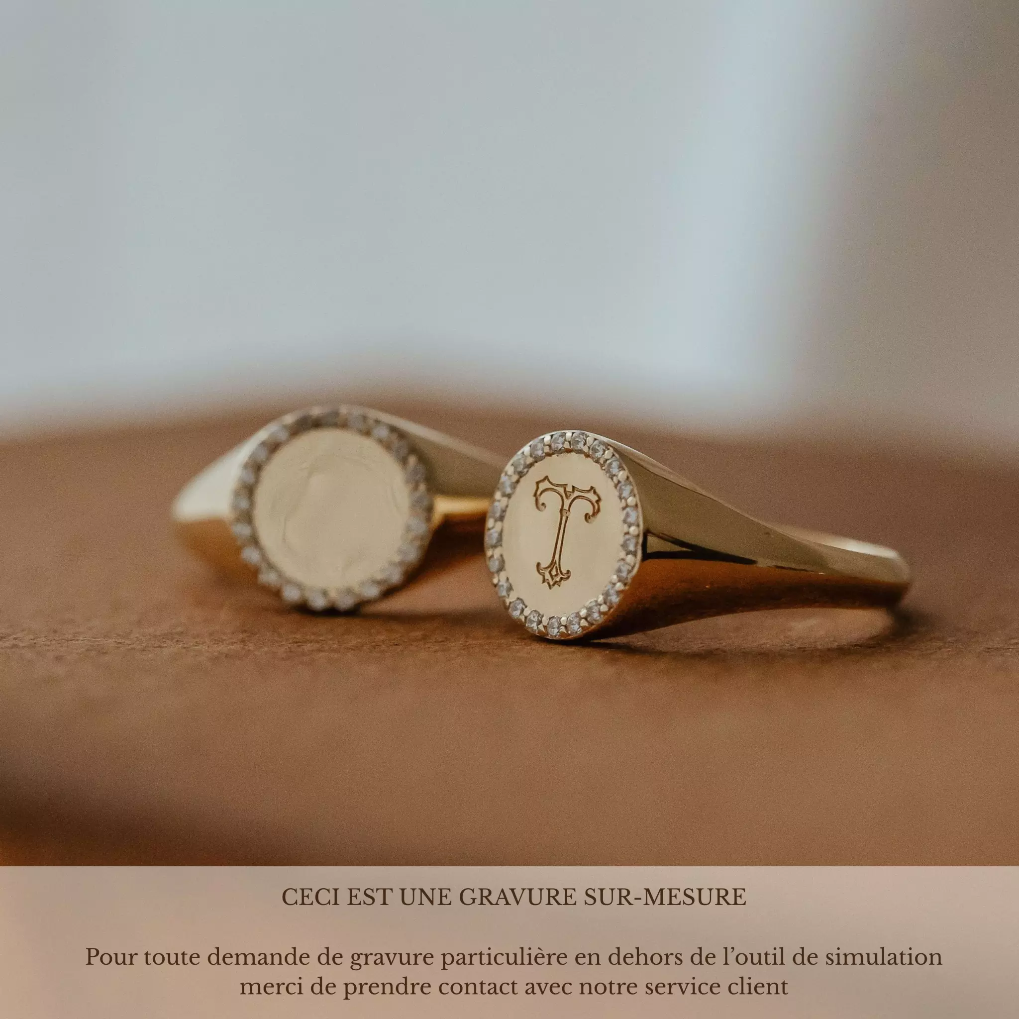 Pensée pour sublimer chaque détail, cette chevalière offre également une personnalisation raffinée : une gravure laser d’une initiale peut être ajoutée au centre du plateau. Vous pouvez choisir la lettre de votre choix parmi notre alphabet exclusif (voir photo), et même opter pour des initiales entrelacées sur devis.