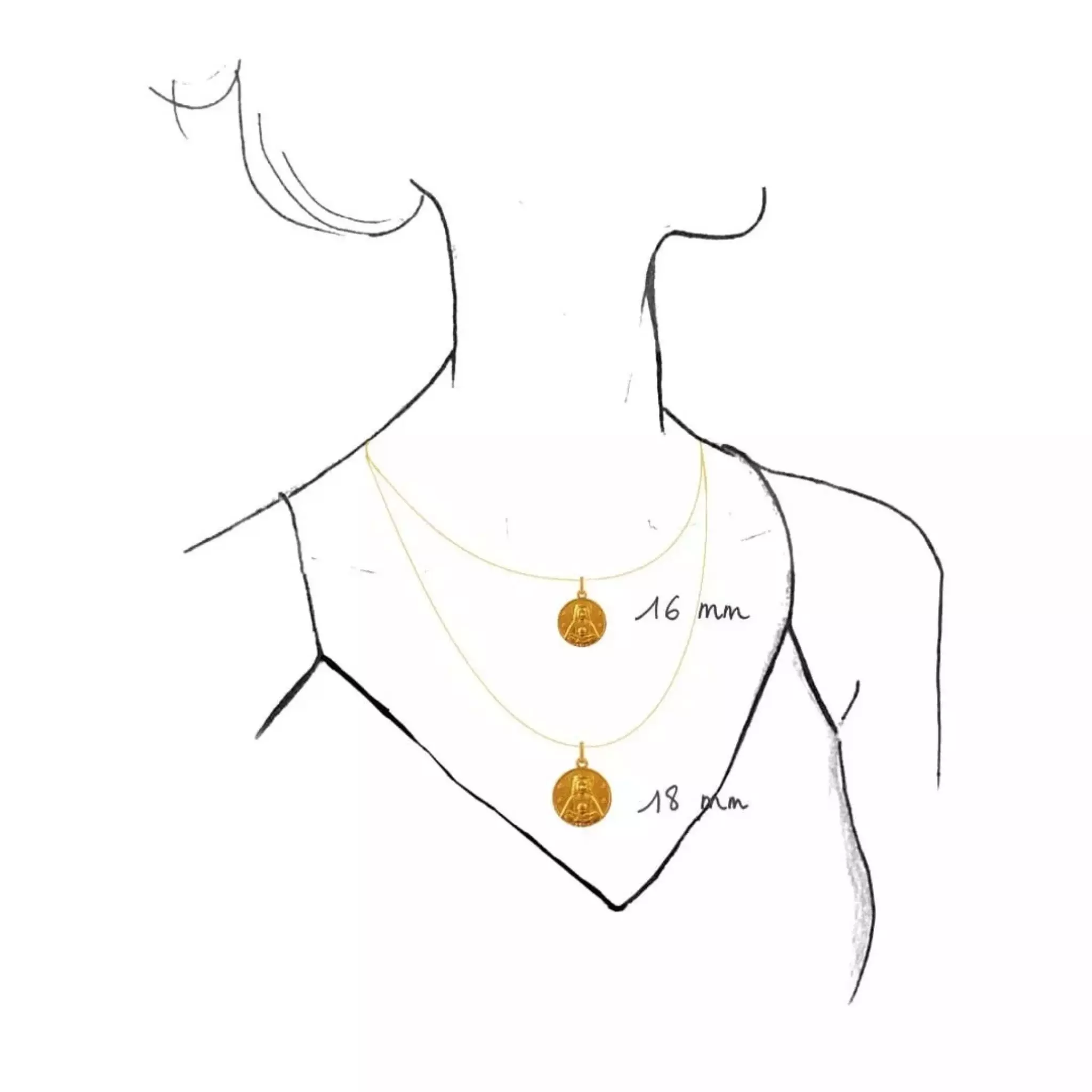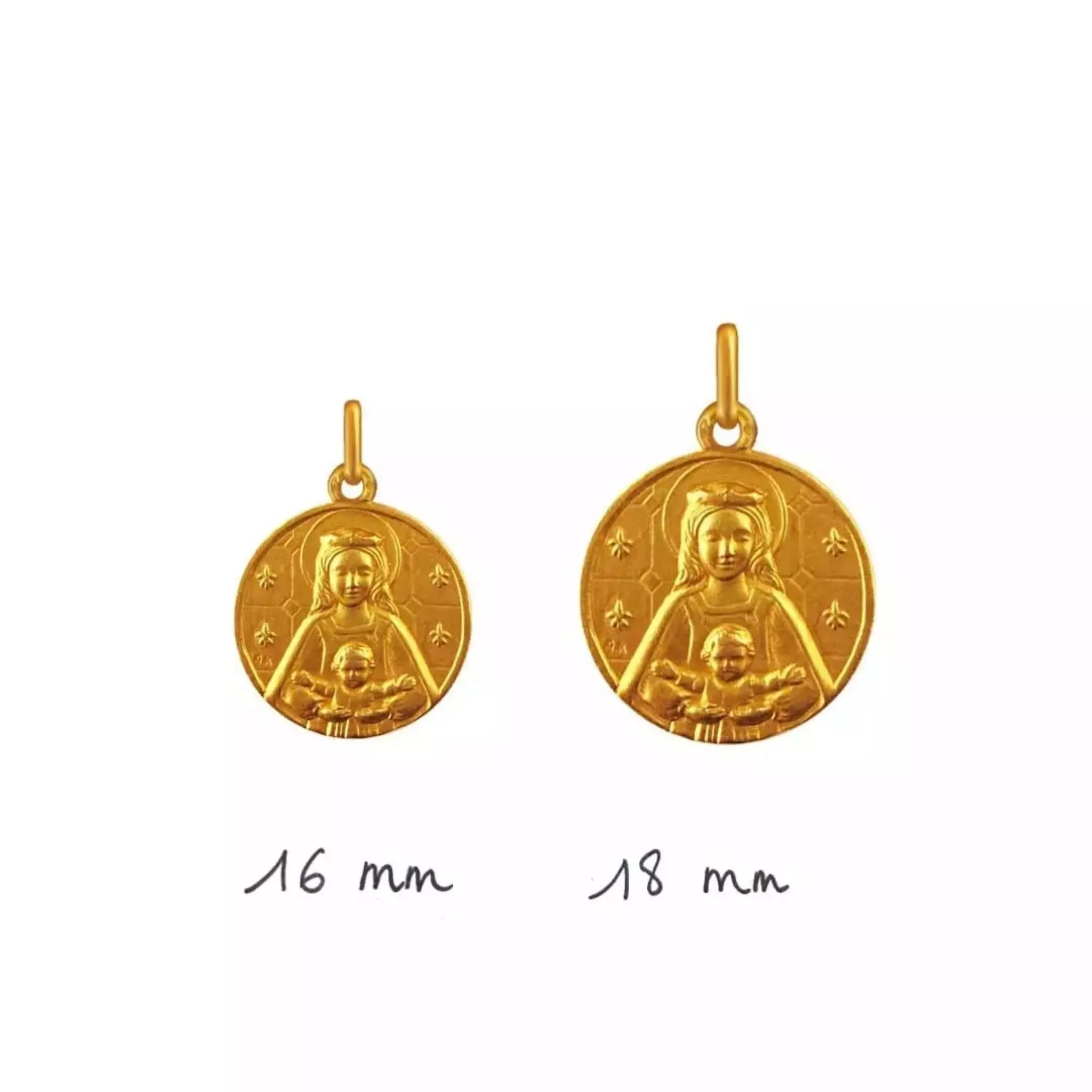 Si l’Enfant Jésus est souvent représenté les bras ouverts, notamment dans nos crèches. En revanche, il est plus rare de rencontrer une Vierge Marie de face sur une médaille de baptême, sans doute lié à la difficulté technique d’une telle représentation, c’est ce qui fait la rareté de cette médaille