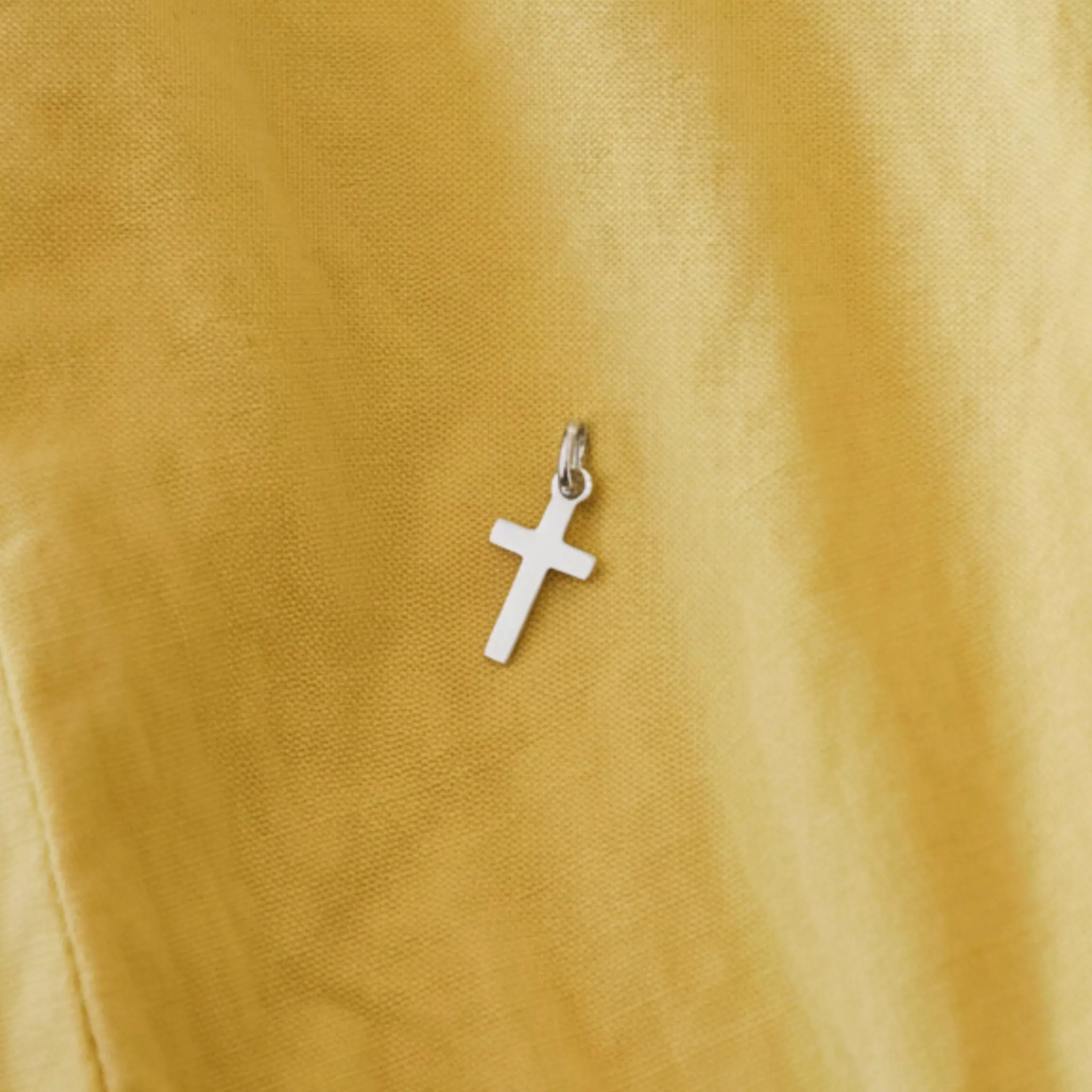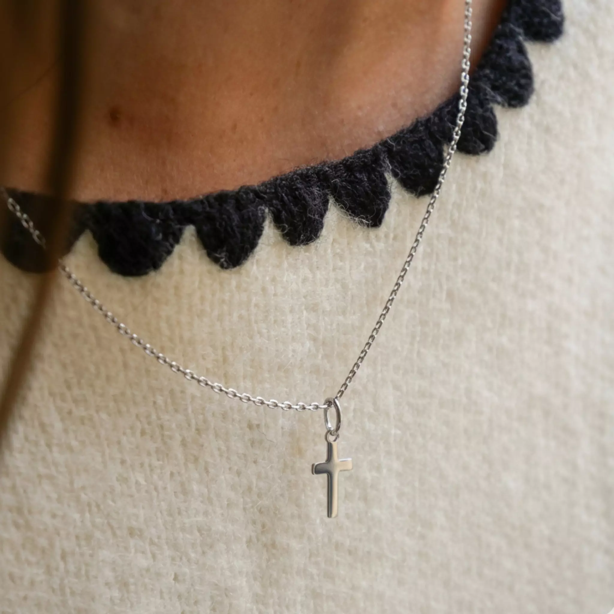 Cette petite croix en or blanc 18 carats (750/1000) incarne sobriété et élégance.