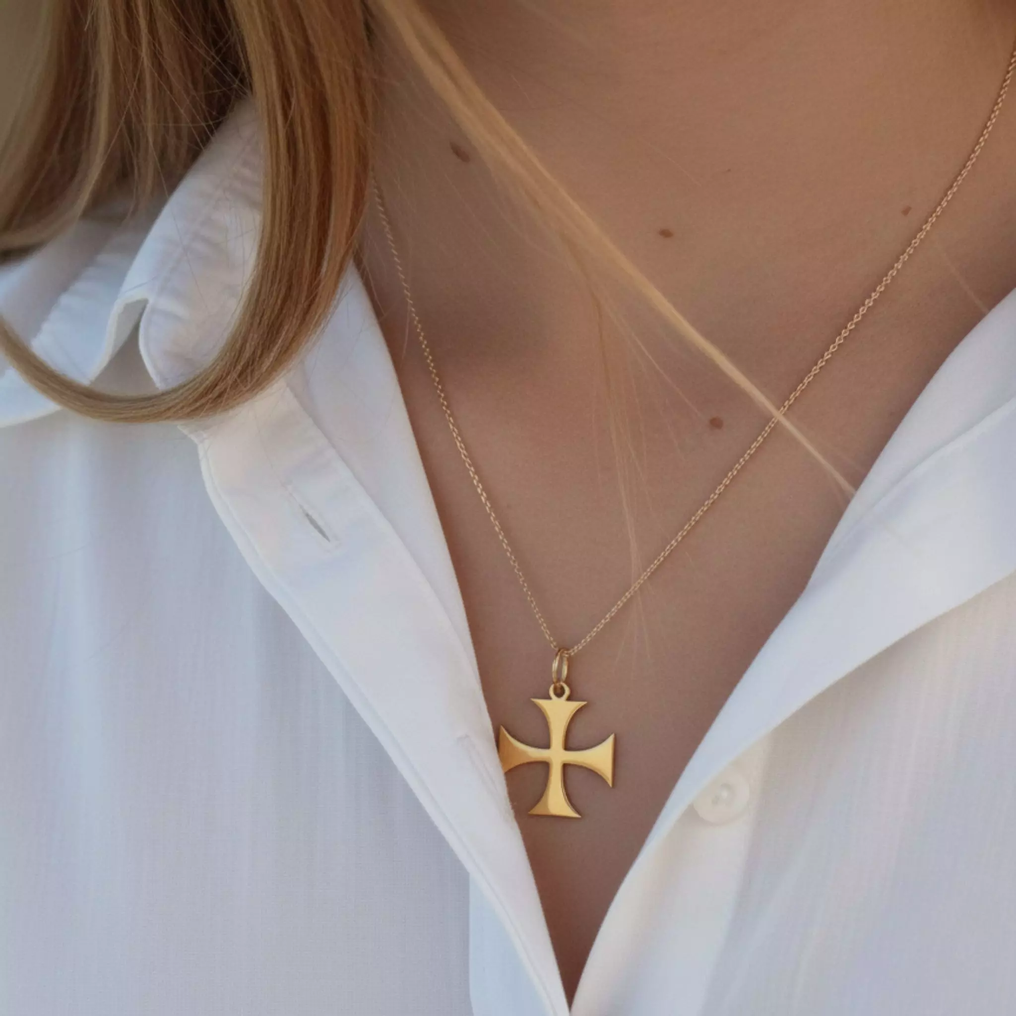 La croix pattée, symbole de l’Ordre des Templiers, évoque la foi, le courage et la quête d’idéal des chevaliers médiévaux. Porter ce pendentif, c’est s’approprier un signe universel de protection et de loyauté. Son design épuré en or jaune reflète la noblesse et la chaleur de ce métal précieux, tout en soulignant la force intemporelle du motif.