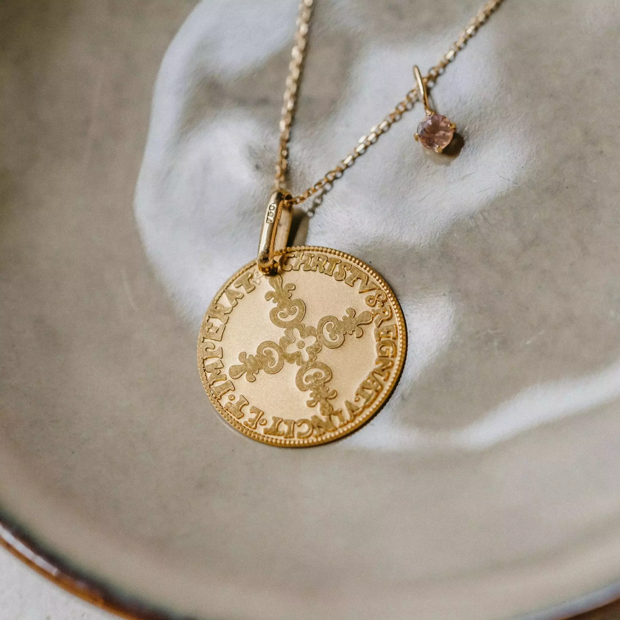 Cette formule issue des Acclamations Carolingiennes, chantées lors des sacres royaux, incarne la souveraineté et la victoire du Christ. Porter cette médaille, c’est choisir un bijou spirituel fort, à la fois héritage historique et symbole de foi vivante.