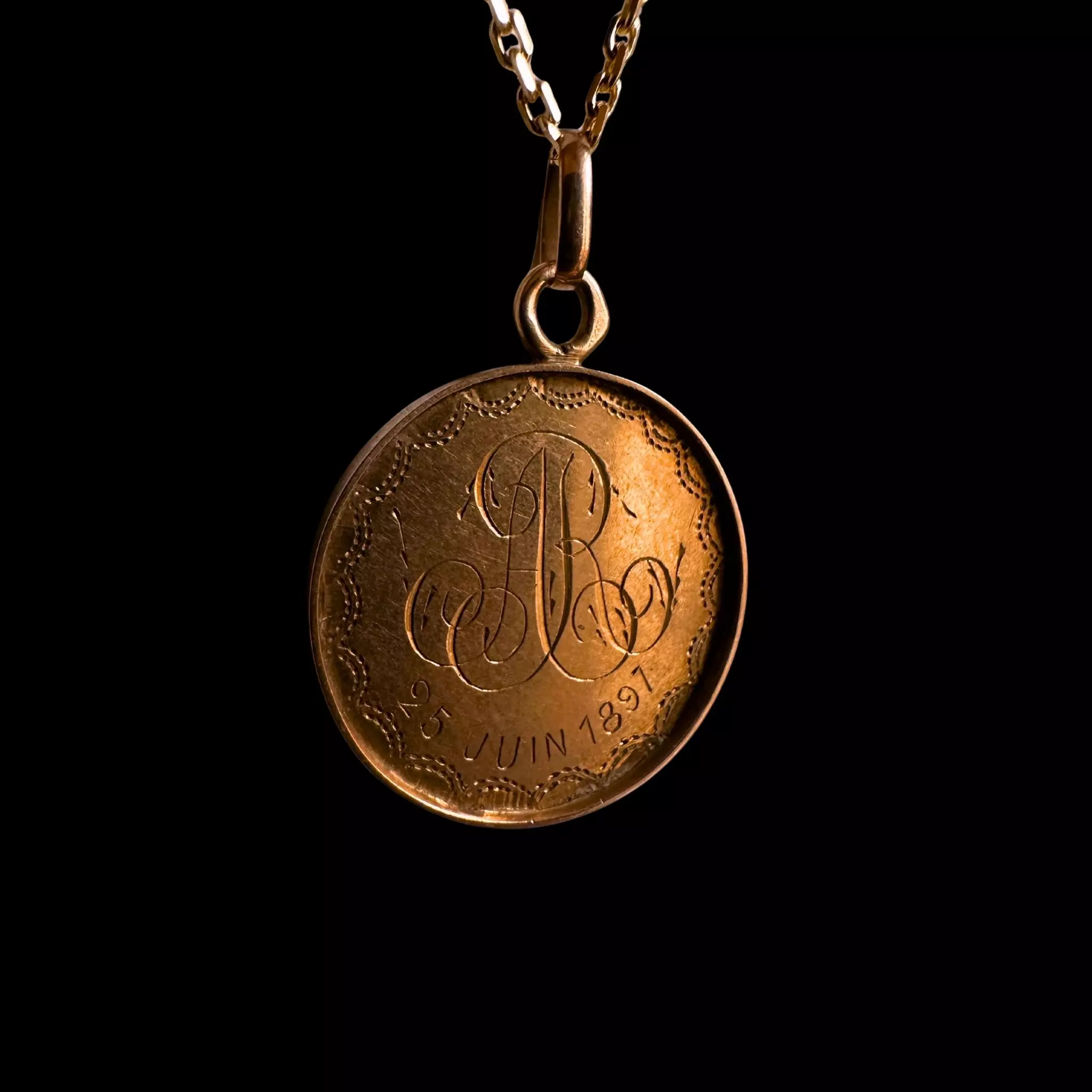 Cette médaille ancienne de la Vierge en or rose 18 carats est un bijou d’une grande finesse.