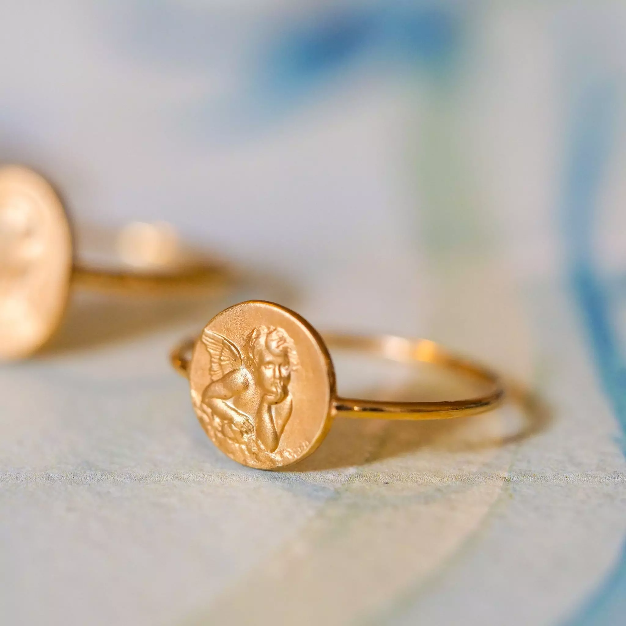Découvrez notre bague médaille ange, une création délicate et intemporelle réalisée dans nos ateliers marseillais. Cette pièce exclusive met en valeur un ange penseur, symbolisant la protection, la douceur et la bienveillance.