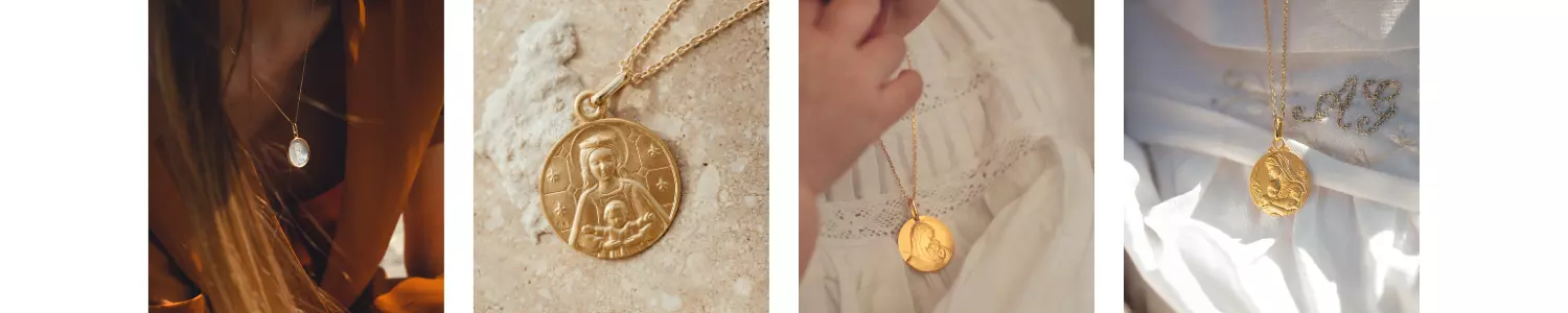 Très appréciées, les représentations de la Vierge ou de la Vierge à l’Enfant possèdent une symbolique très forte. Ces médailles représentent la protection de l’enfant par la Vierge Marie. Un symbole puissant qui accompagnera le baptisé tout au long de sa vie pour le protéger.